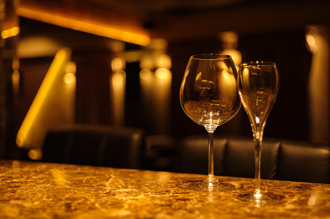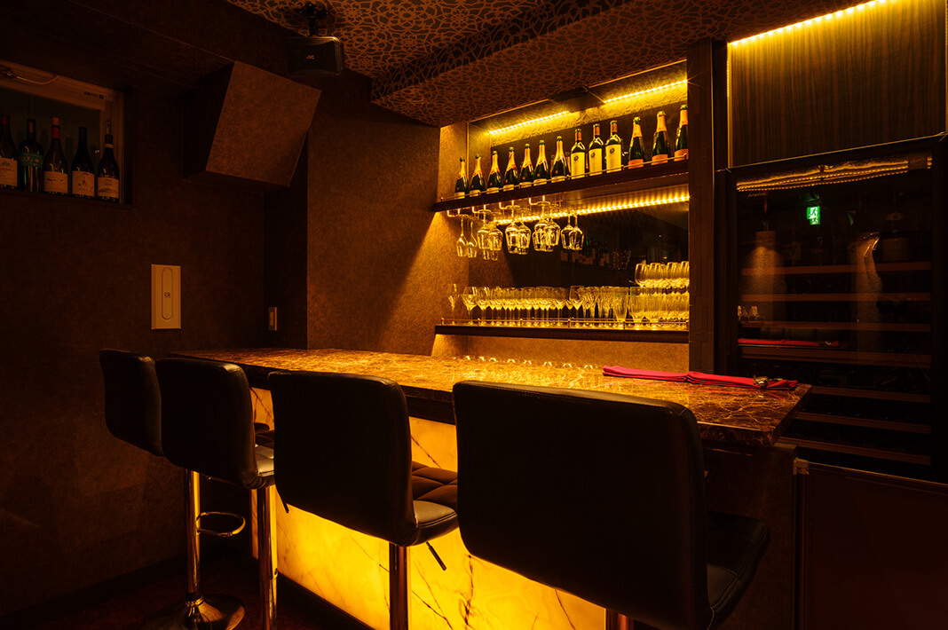 まるで高級クラブのような内装ですが、ここでは幅広いご年齢の大人の皆様がワインを揺らしながら会話を楽しまれております。そしてこうした雰囲気の中で繰り広げられる店主渾身のジョークには98%のお客様にご満足頂いています。